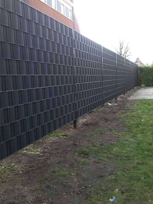 Dubbelstaafmat hekwerk met vlechtband is onderhoudsvrij en een hele mooie vervanger voor een houten schutting!