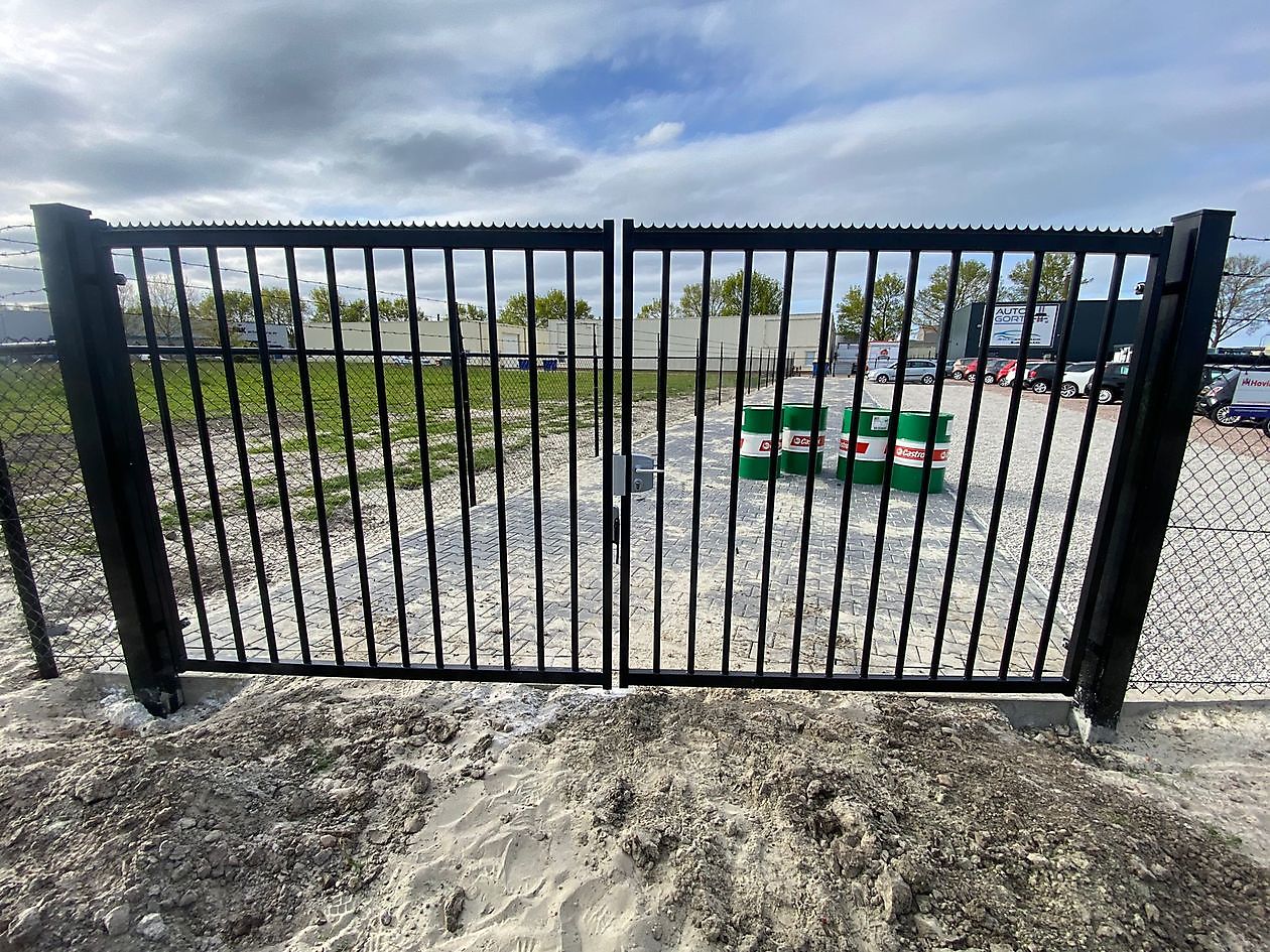 Hier is gekozen voor gaashekwerk met 3 rijen puntdraad + een dubbele draaipoort met een puntkam.