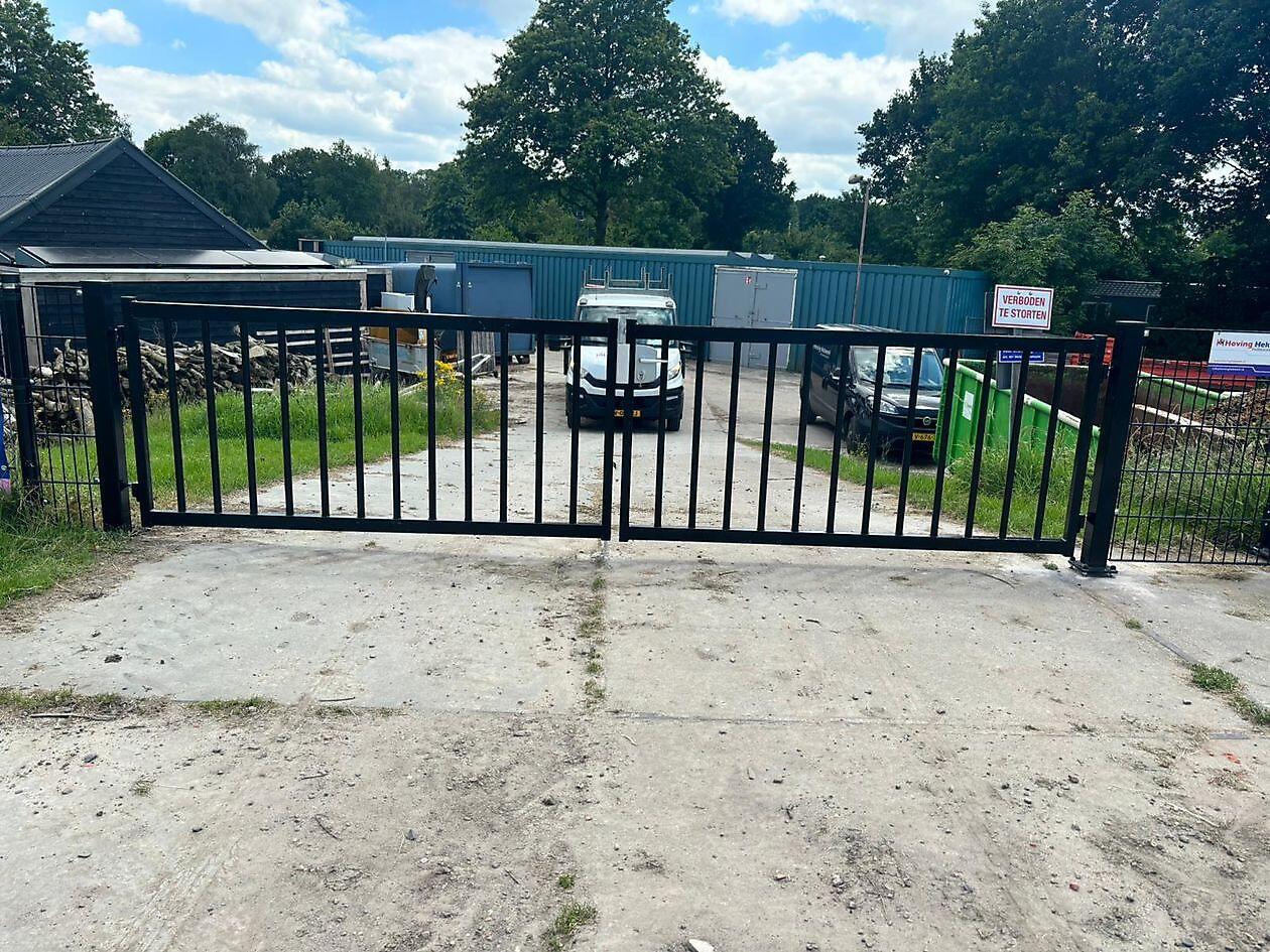 Aansluitend op de schuifpoort d.m.v. dubbelstaafmat hekwerk.