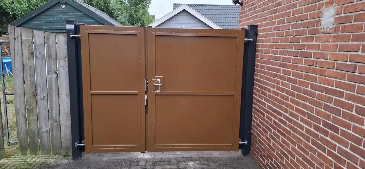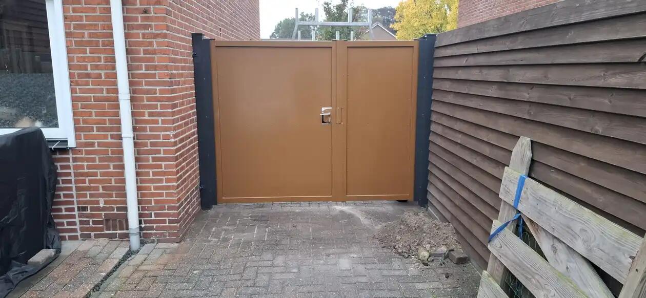 Deze poort is op wens van de klant in een speciale kleur gecoat.