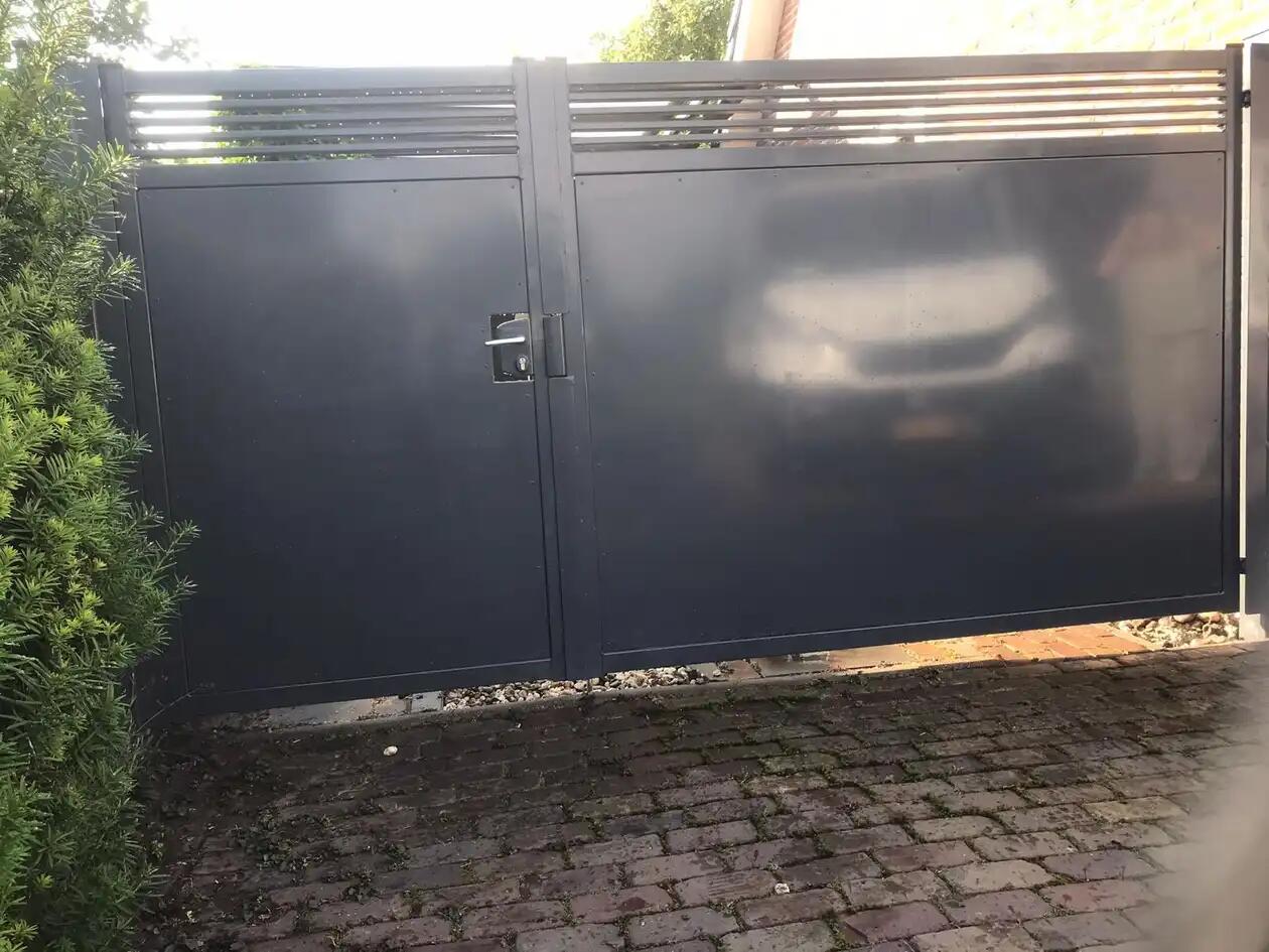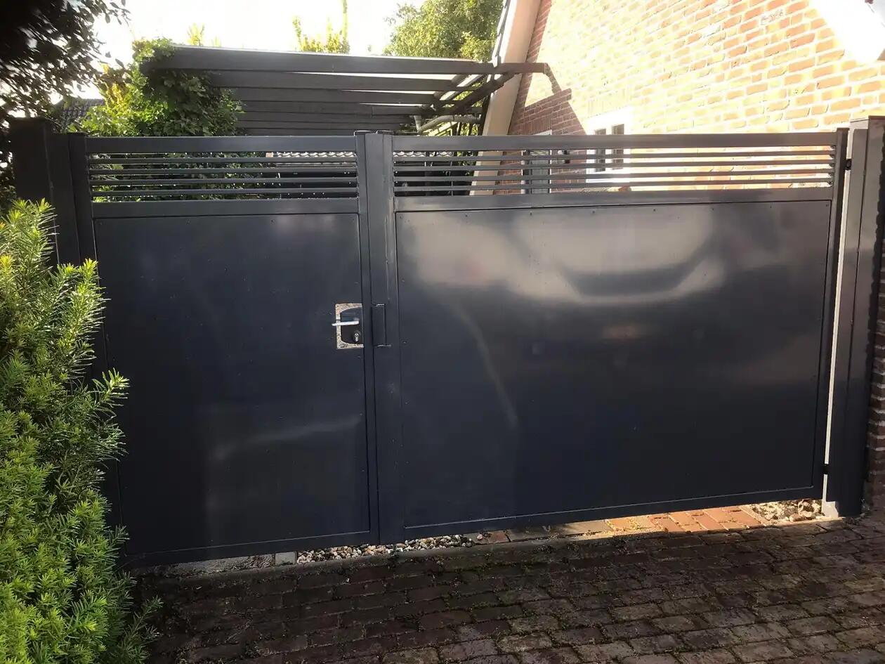 In Winschoten hebben wij deze poort op maat mogen produceren en monteren. Hier is gekozen voor een vulling d.m.v. plaatwerk en aan de bovenzijde enkele lamellen. Nieuwsgierig wat wij voor u kunnen betekenen?
