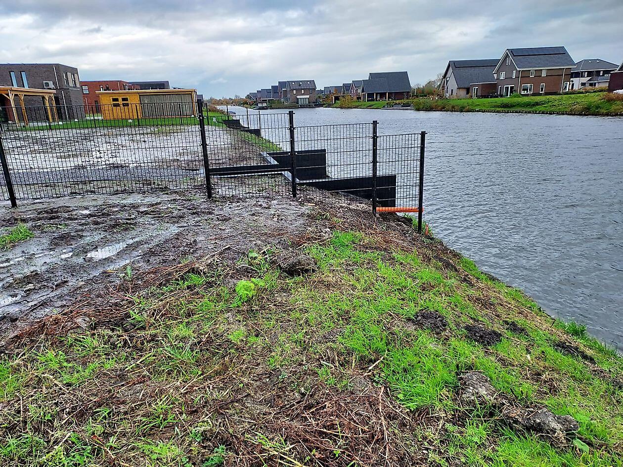 Ook is hier gekozen voor een slootwaaier middels dubbelstaafmatten, om dit netjes en veilig te krijgen in de slootwal.
