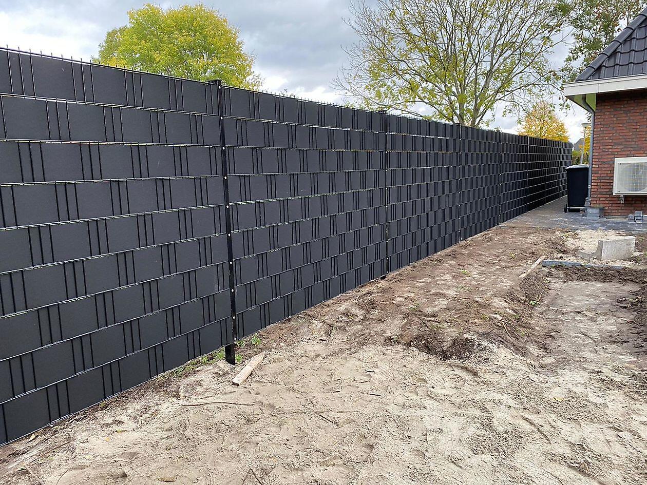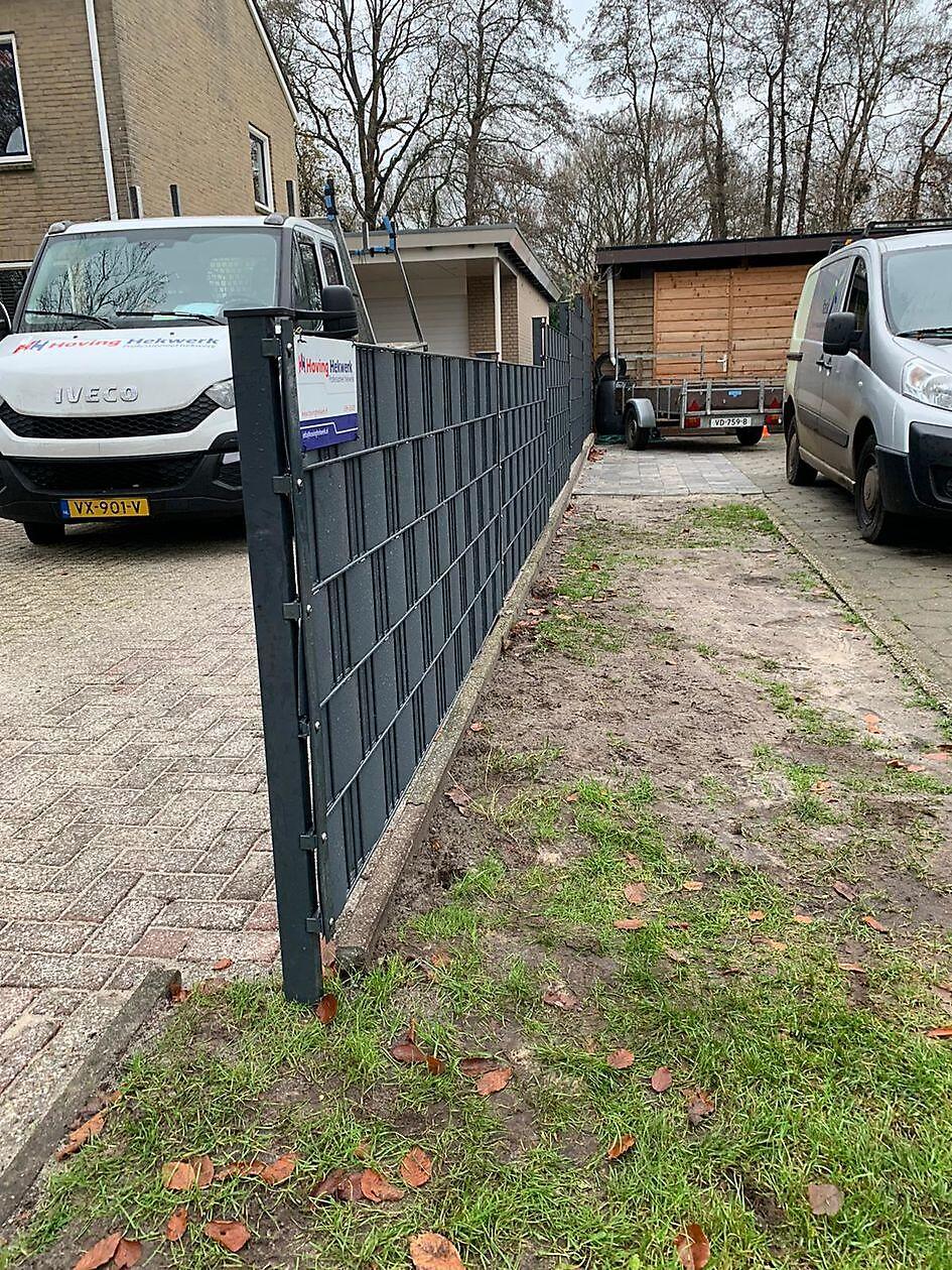 Dubbelstaafmat hekwerk met vlechtband is onderhoudsvrij en een hele mooie vervanger voor een houten schutting!