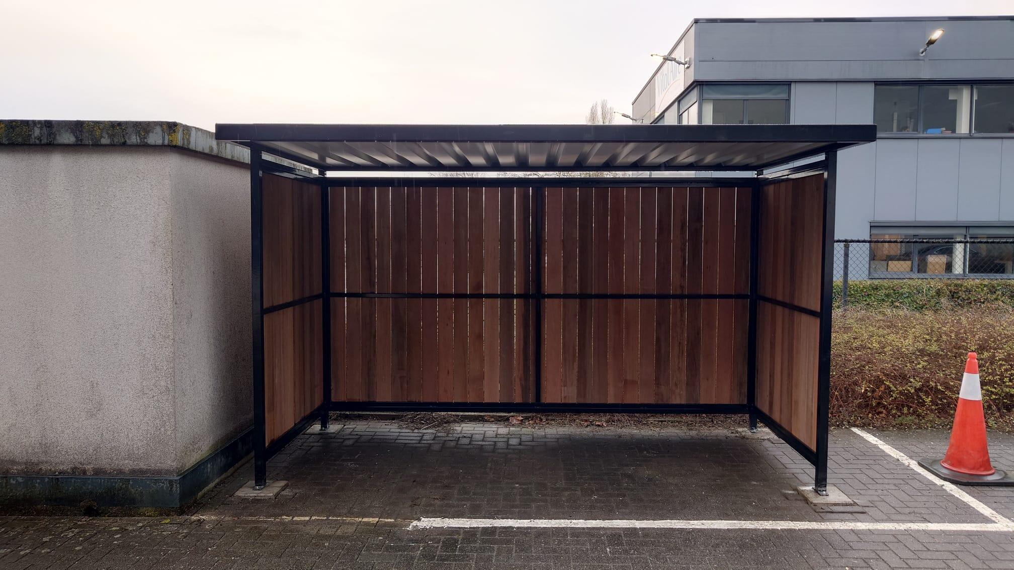 Overkapping Leipzig met houten vulling, frame gecoat in RAL-9005