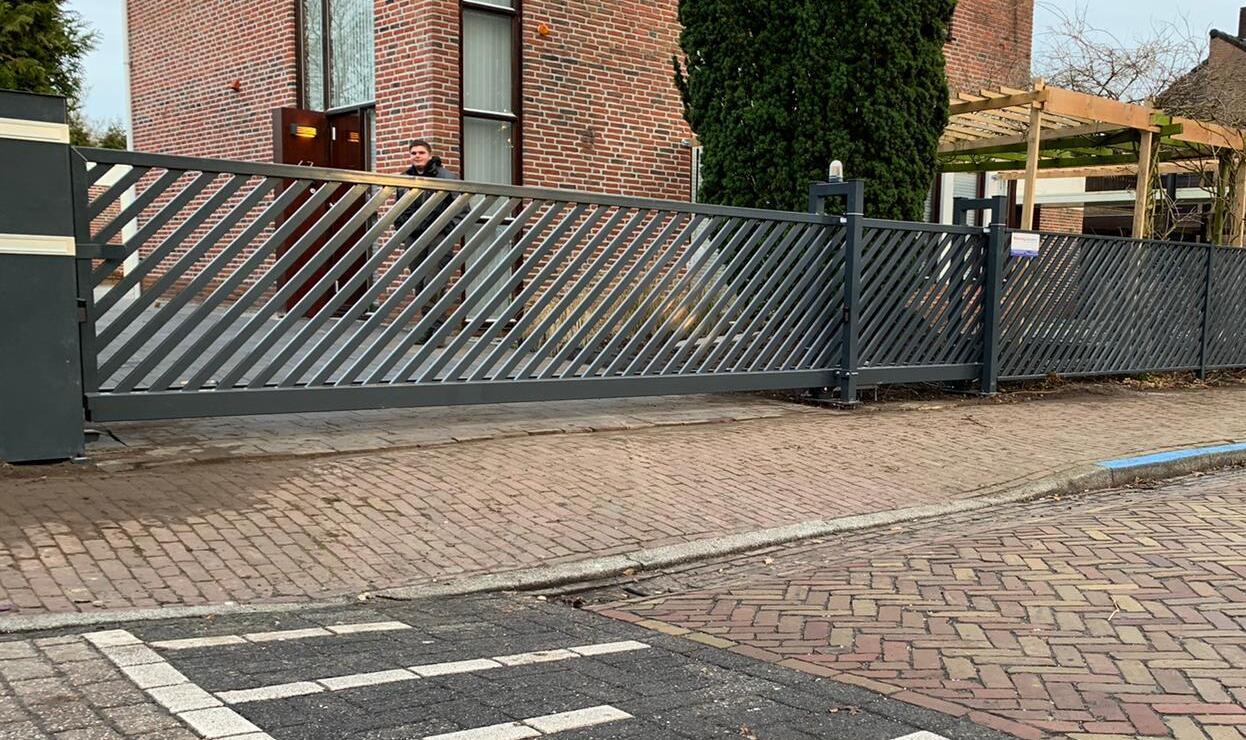 Schuifpoort met schuine lamellen