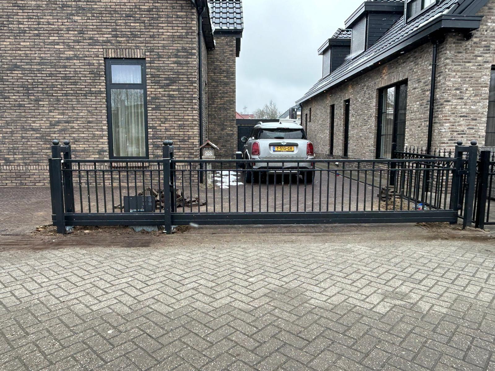 Voor een klant in Emmen leverde Hoving Hekwerk strak afgewerkte schuifpoort met sierhekwerken met precisie en vakmanschap. In elk stuk zit degelijkheid en aandacht voor detail, van afwerking tot bevestiging.