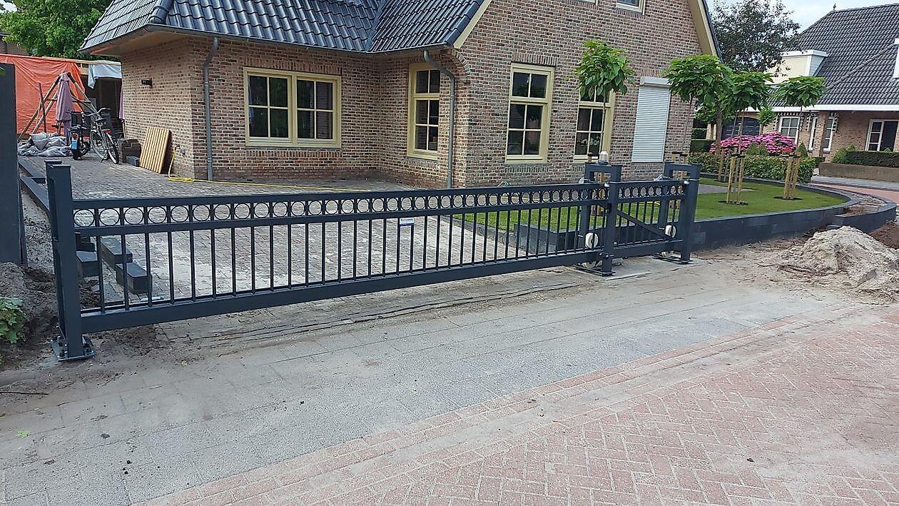 Het huis is voorzien van een op maat en naar wens gemaakte schuifpoort + aansluitend hekwerk.