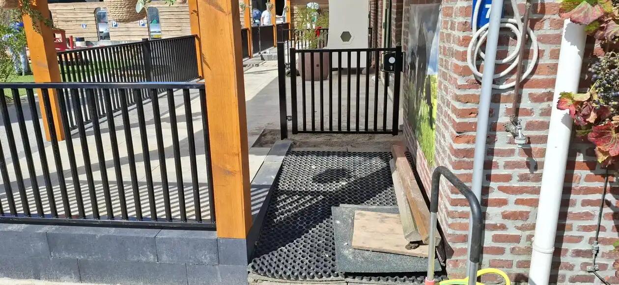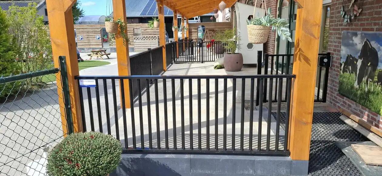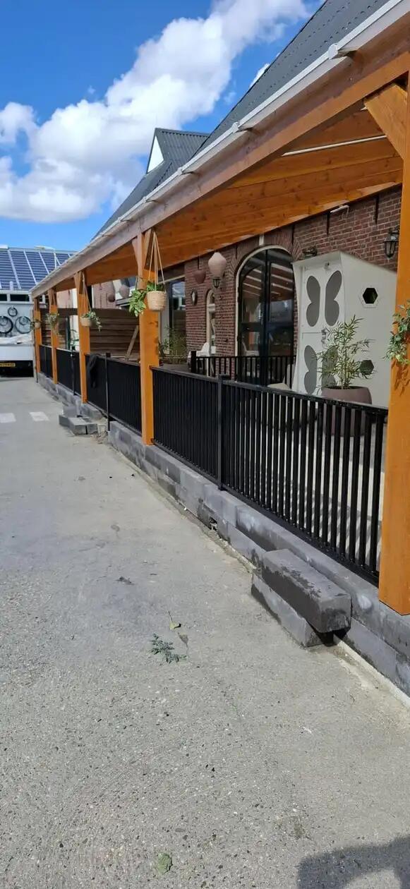 Voor een project in Roodeschool mochten wij dit spijlenhekwerk op maat produceren monteren, zodat dit exact tussen de staanders van de overkapping zouden passen.