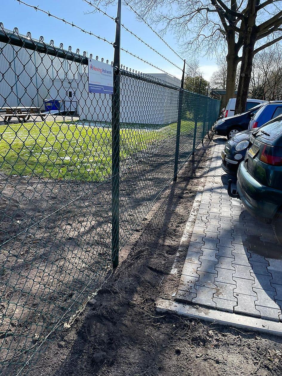 Hier is gekozen voor gaashekwerk met 3 rijen puntdraad + een dubbele draaipoort met een puntkam.