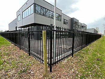 Rondom voorzien van spijlenhekwerk en 2 elektrische schuifpoorten.