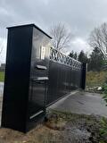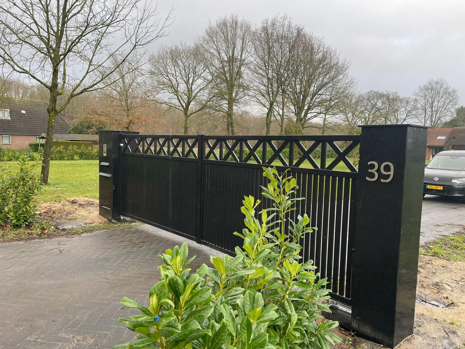 Voor een klant mochten wij in Tiendeveen een mooie geautomatiseerde draaipoort met woodlook vulling